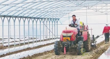 在廣至藏族鄉連體鋼架大棚內,自動起壟覆膜機正在進行現場作業,隨著機器的不斷行進,一行行壟整齊排列開來。
