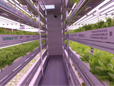 移動箱體型智能植物工廠利用20尺、40尺型便于流動運輸保溫殼體或者是火車車廂,結構分設備區和種植區,***大程度優化空間和種植
